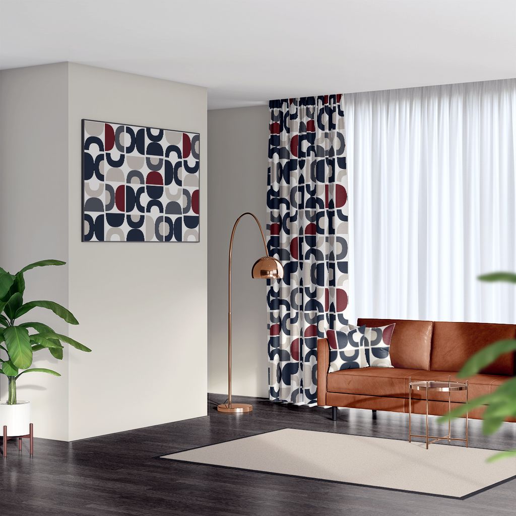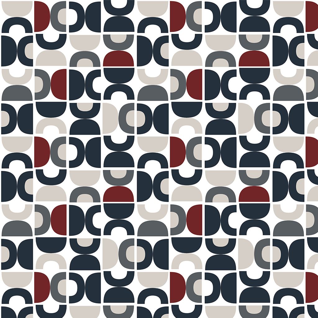 Snyggt abstrakt mönster i grå, röd och beige från Björk Forth.
