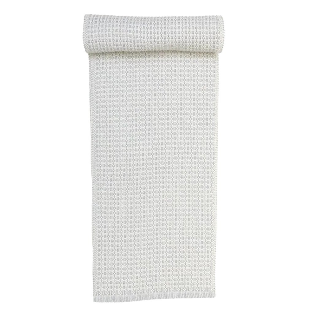 Elegant och hållbar återvunnen melerad löparen Sten i offwhite och ljusgrått. Tillverkad i 99% återvunnen textil.