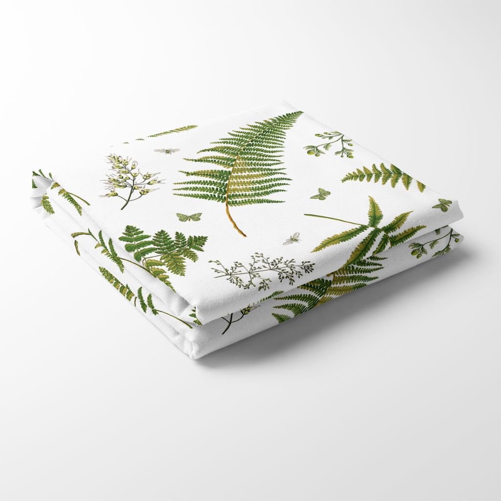 Bordsduk med offwhite botten med gröna växter och insekter med design av Mialotta Arvidsson-Mars.