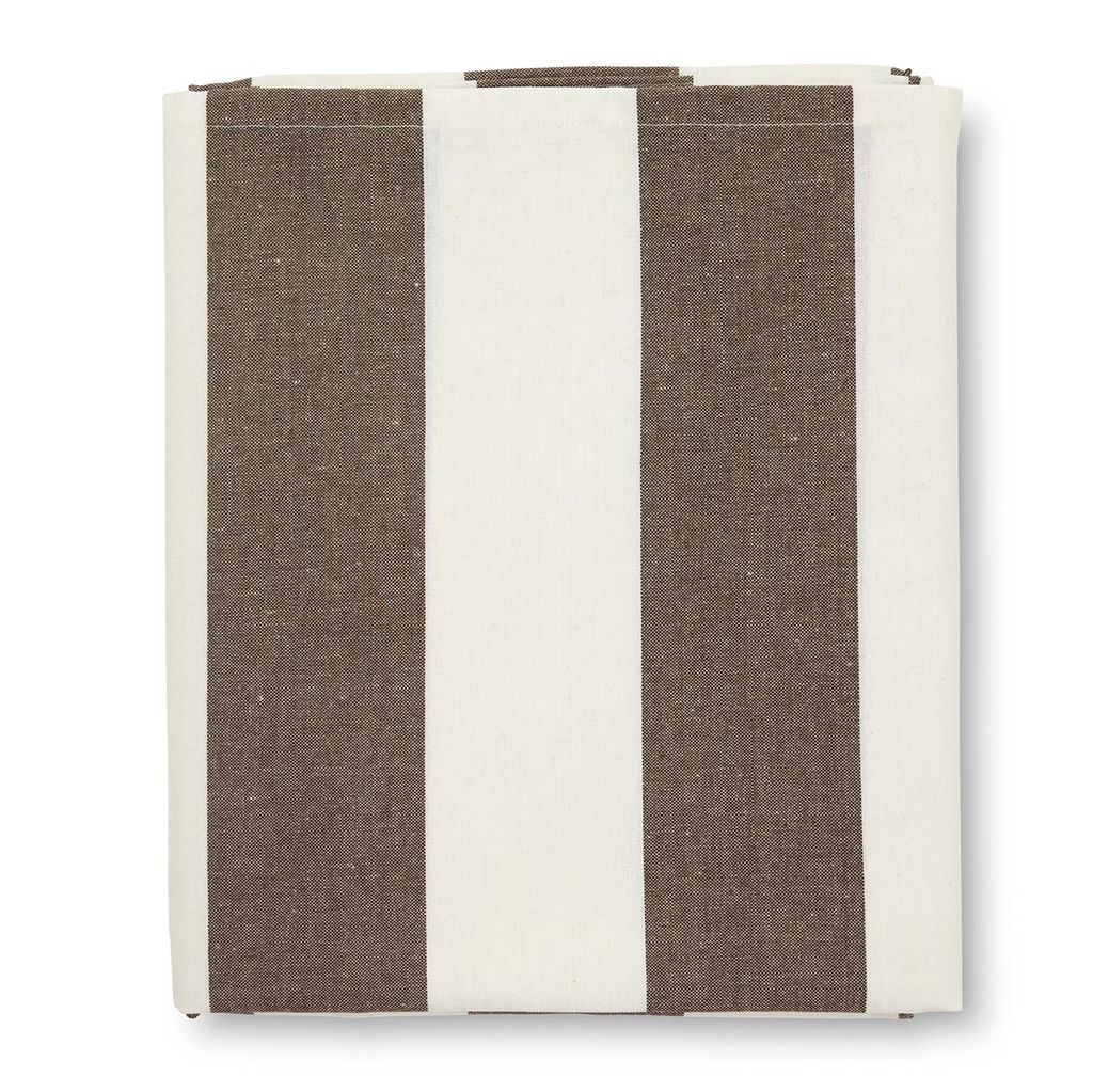 Striato är en randig bordsduk i brunt och vitt som ger bordet en varm och klassisk känsla. Den slitstarka vaxade ytan gör duken både praktisk och dekorativ – perfekt för både vardagsbruk och utomhusdukningar.