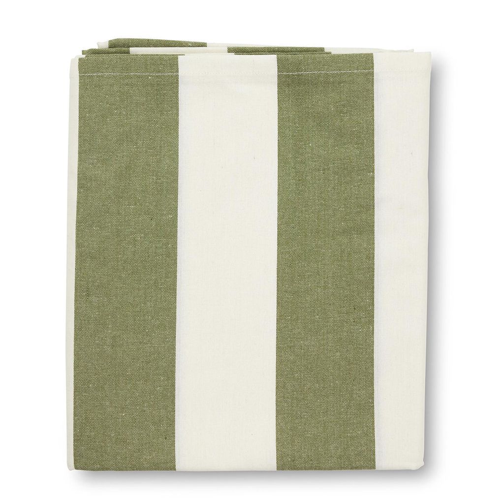 Striato är en randig bordsduk i grönt och vitt som ger bordet en klassisk och fräsch känsla. Den tåliga vaxade ytan gör duken både dekorativ och praktisk – perfekt för både vardagsdukning och utomhusbruk.