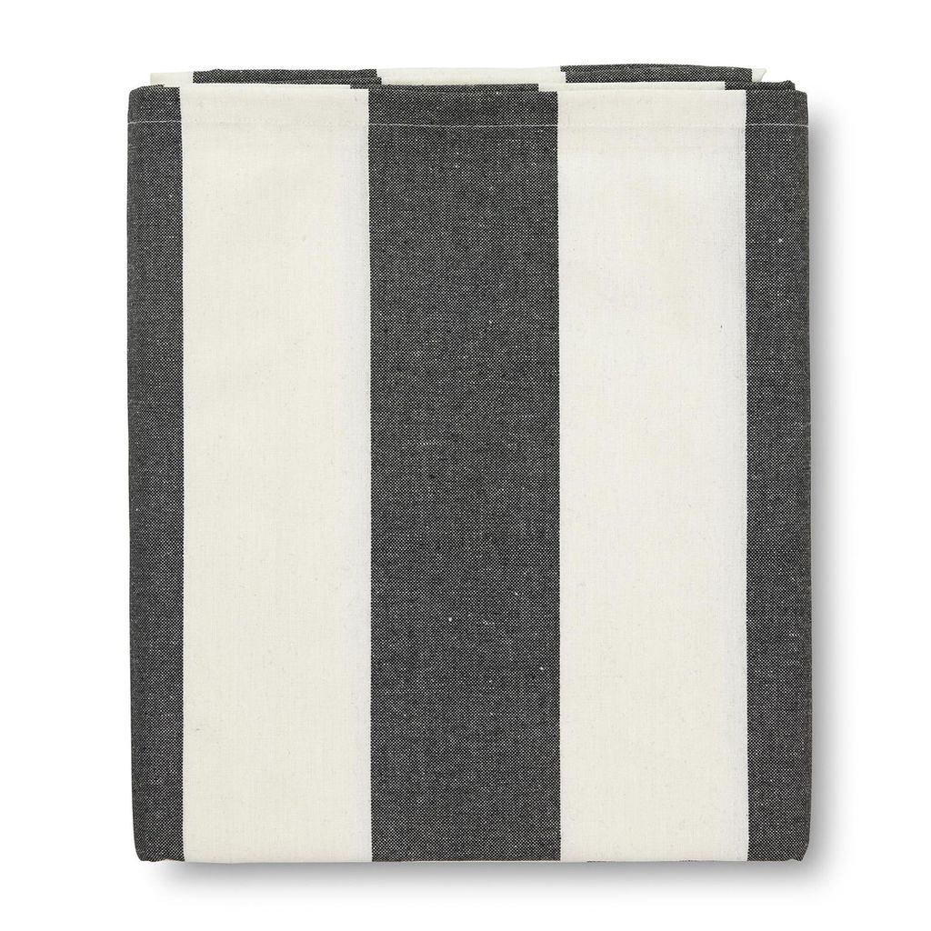 Striato svart randig bordsduk är en stilren vaxduk som kombinerar klassisk design med praktisk funktion. De breda ränderna i svart mot vitt skapar ett tydligt och tidlöst uttryck som ger bordet en elegant inramning.