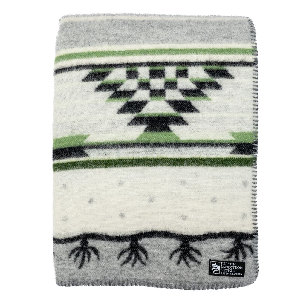 Sundborn ullfilt är en hyllning till det rika kulturarvet från Carl Larsson gården. Inspirerad av det överkast som Karin Larsson vävt, nu återfött i en skön sammansättning av färger och mönster. Med en vit bas och detaljer i grått, svart och grön.
