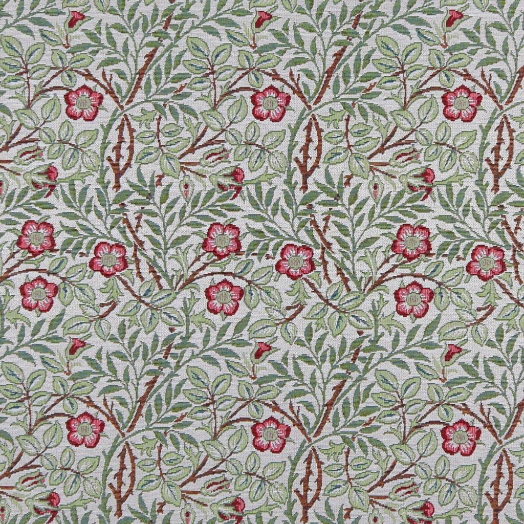 Eleganta gobelängtyg med tidlös mönster av blommor och kvistar i harmoniska röda, rosa, gröna och beige toner. Det detaljrika mönstret, inspirerat av klassisk textilkonst, ger en känsla av lyx och tradition. Perfekt för möbelklädsel, kuddar eller dekorativa inslag som förvandlar ditt hem till en stilig och varm miljö.