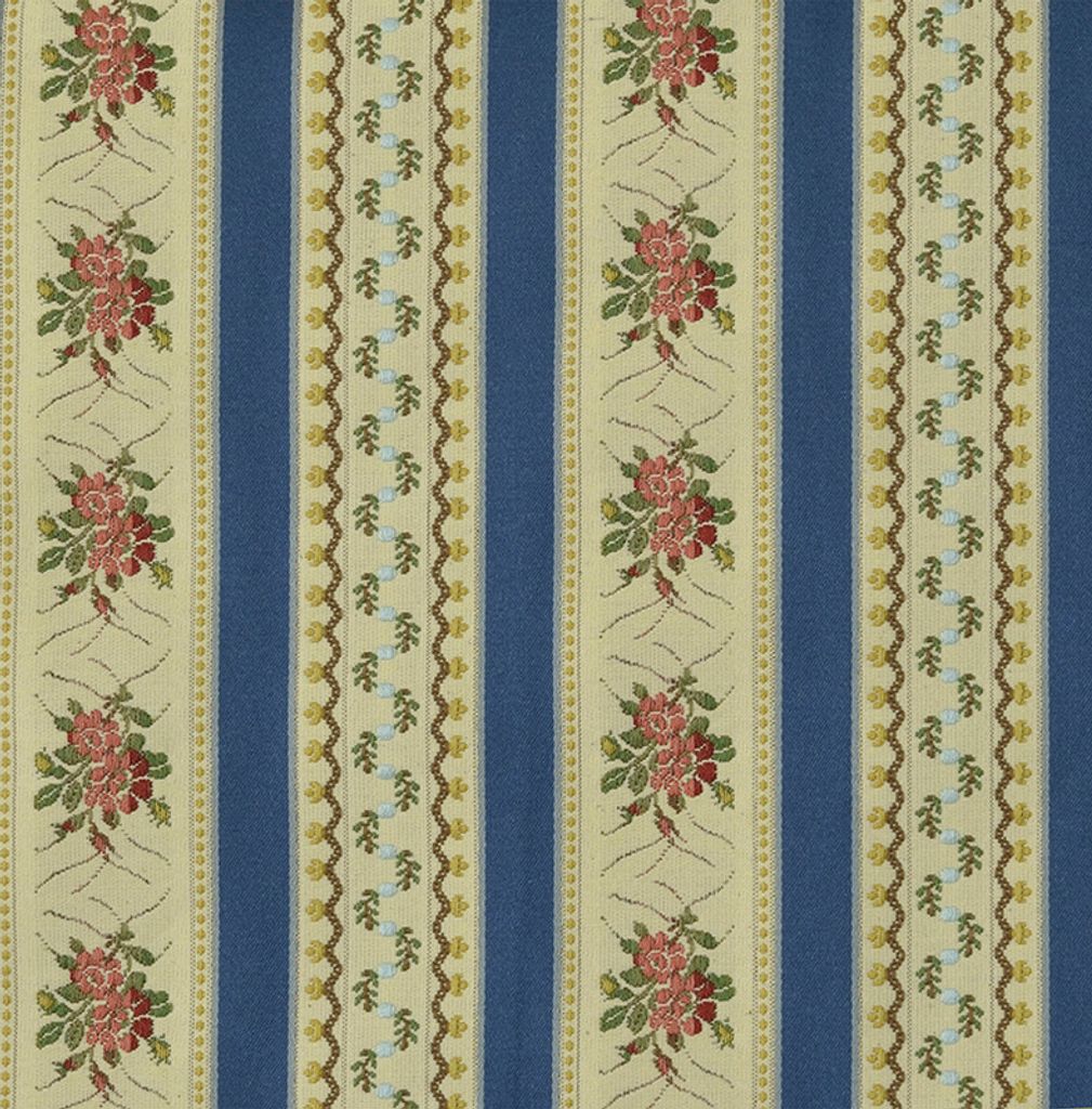 Beskrivning av Talamona blå randigt stiltyg för möbelklädsel