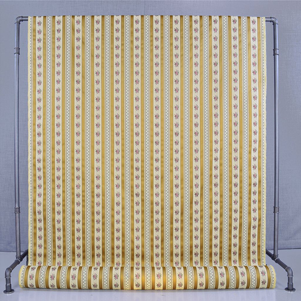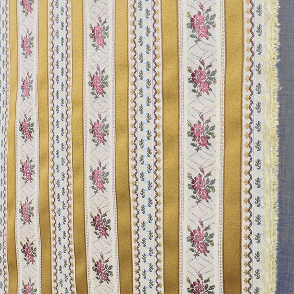 Beskrivning av Talamona guld randigt stiltyg för möbelklädsel