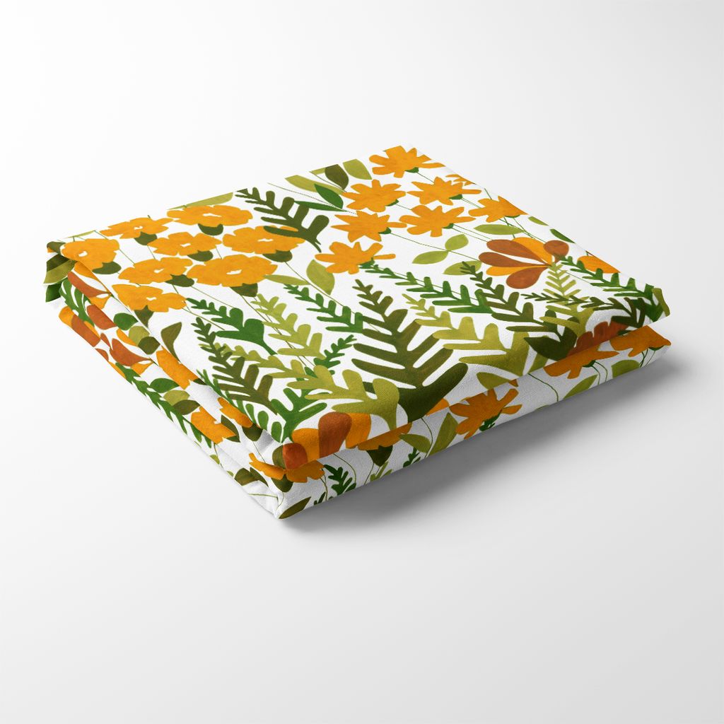 Färgstark och livfull bordsduk med blommigt mönster i gula och orange toner. Täppan gul skapar en varm och välkomnande känsla i köket eller matsalen – perfekt för såväl vardag som fest. Duken finns i 4 olika storlekar.