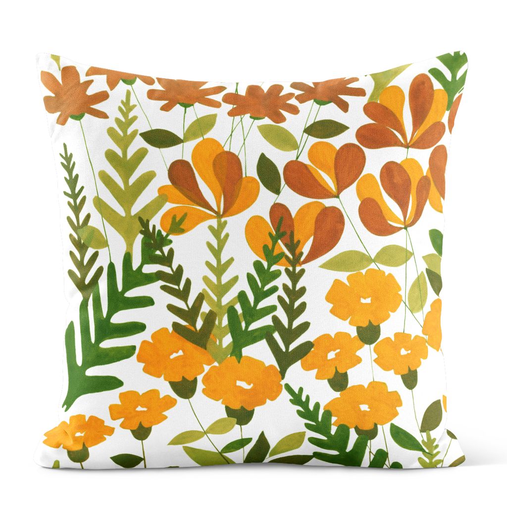 Kuddfodral i höstens tecken med grafiska blommor och blad. 47x47 cm. Mönsterplaceringen varierar, vilket gör varje kuddfodral unikt. Innerkudde ingår ej!