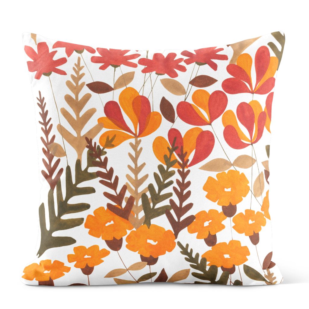 Kuddfodral med stiliserade höstmönster – mjuk bomull och retroinspirerad form.