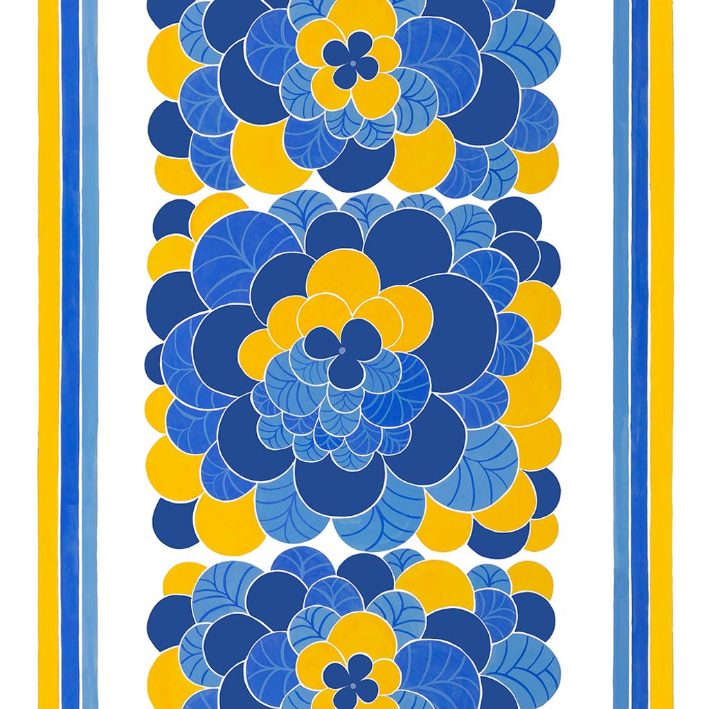 Beskrivning av Textilvaxduk Cirrus blå-gul