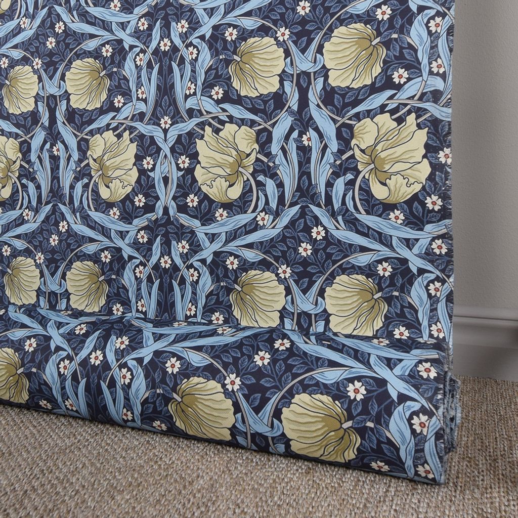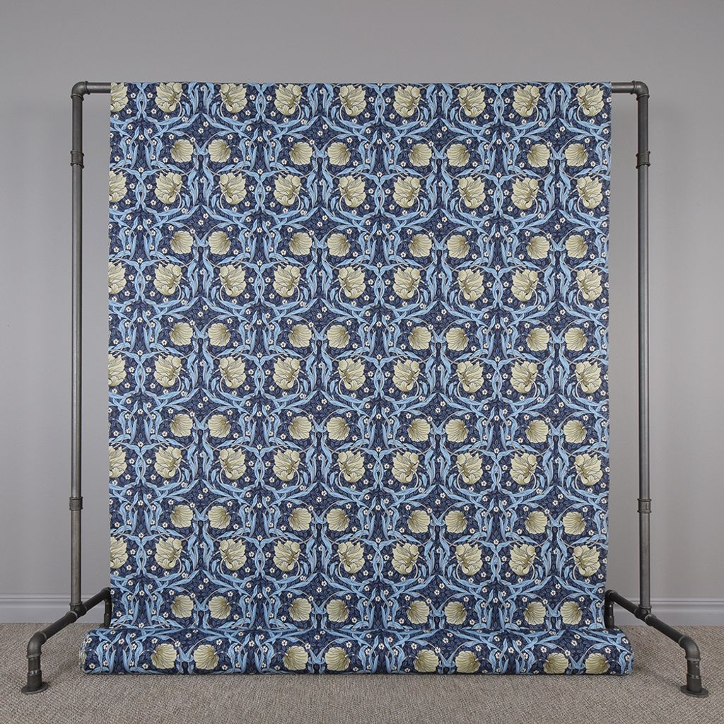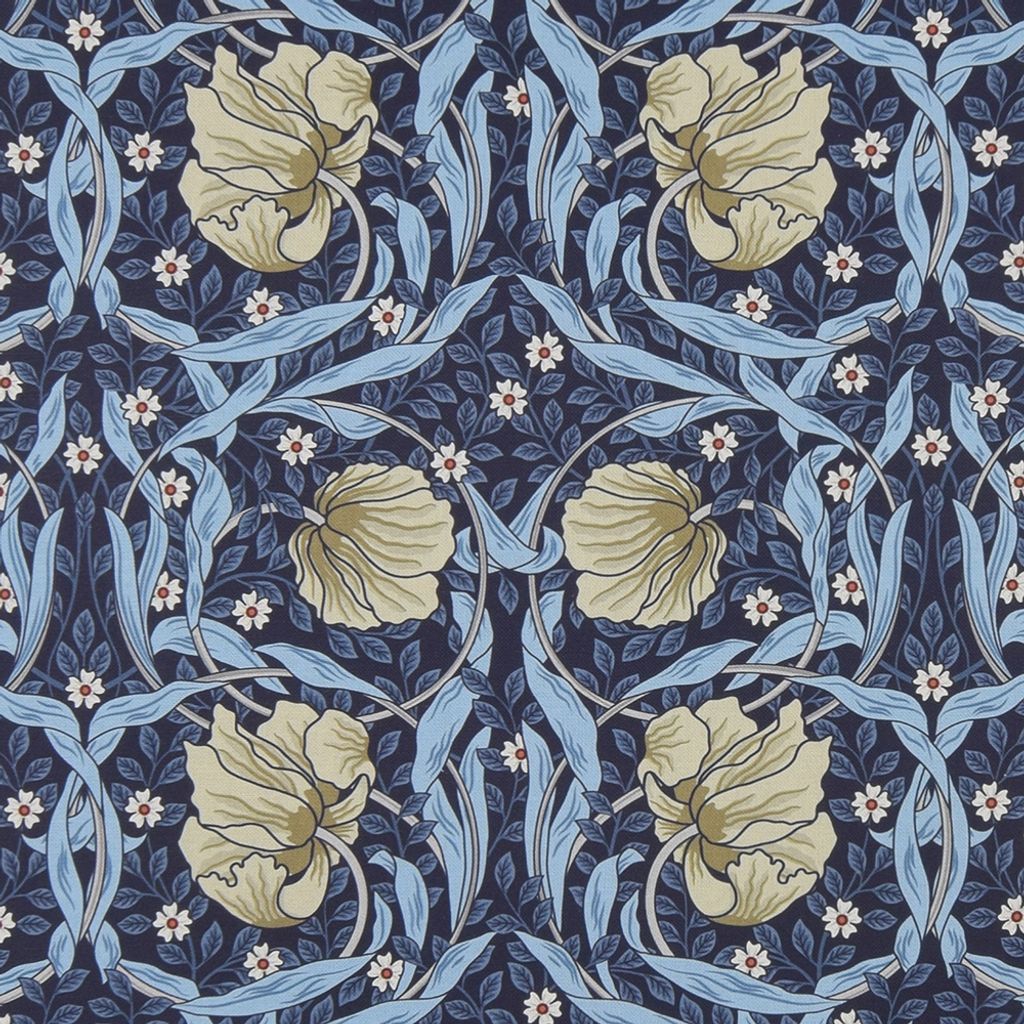 Grace blå är en textilvaxduk med ett charmigt mönster inspirerat av Arts and Crafts-rörelsen, där slingrande bladverk och stora blommor bildar ett elegant och levande uttryck. Den djupblå bakgrunden kombinerat med ljusblåblå blad och blekgula blommor skapar en klassisk, nästan poetisk känsla som passar lika bra i lantliga kök som i moderna hem.