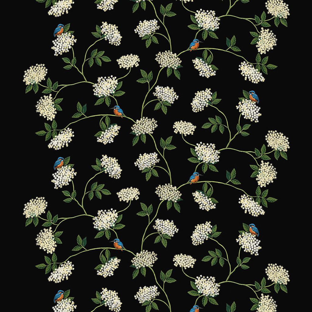 Beskrivning av Textilvaxduk Kungsfiskaren svart