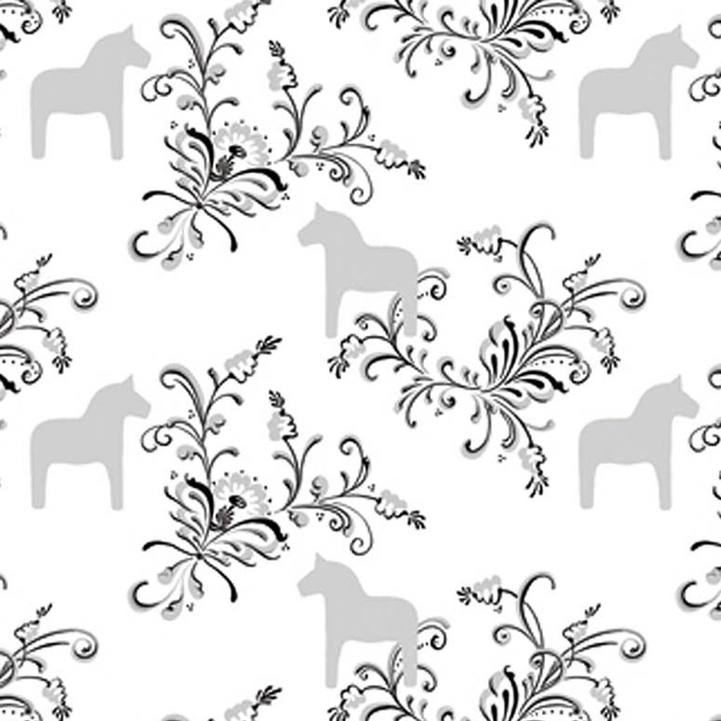 Textilvaxduk Kurbits silver med dalahästar