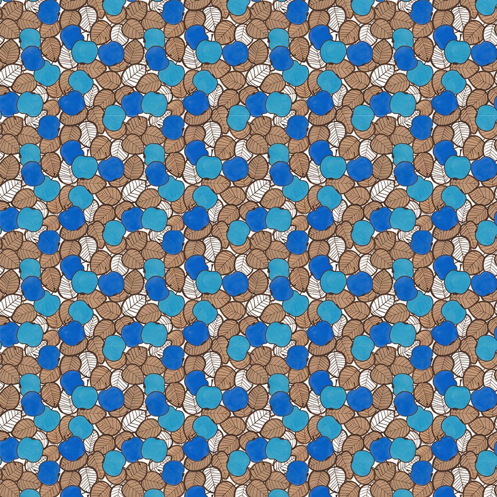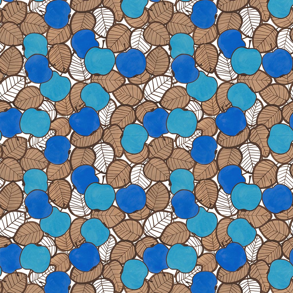 Tyget Päppel med bruna och vita blad och blå äpplen, gör sig bra till gardiner, kuddar, duk, väskor m.m.