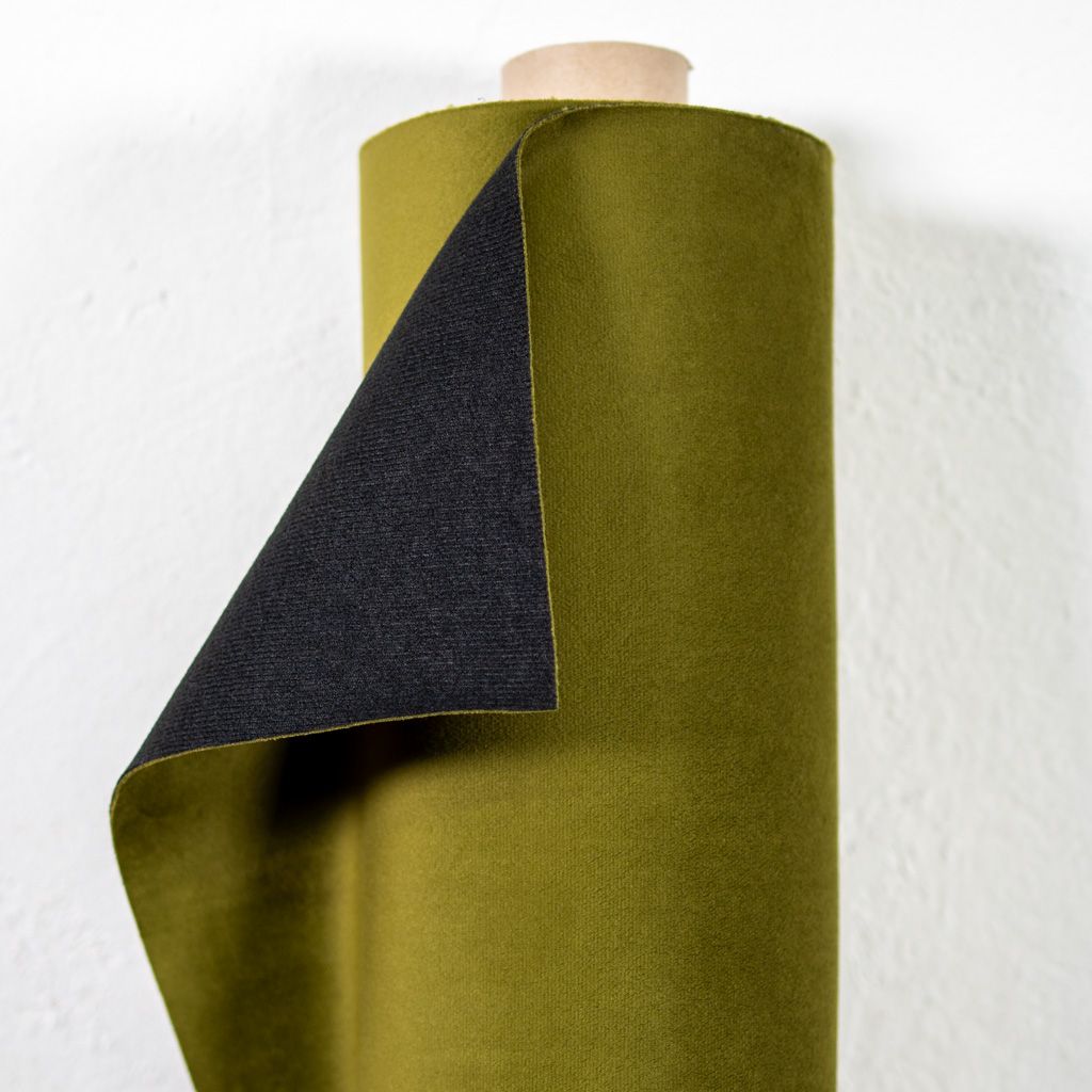 Olivgrön möbelsammet med härlig kvalité. Perfekt för att klä om möbler, sy stilrena kuddar eller skapa en elegant sänggavel. Animal friendly och hållbar för både hem och offentlig miljö.