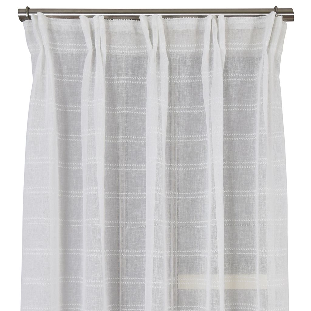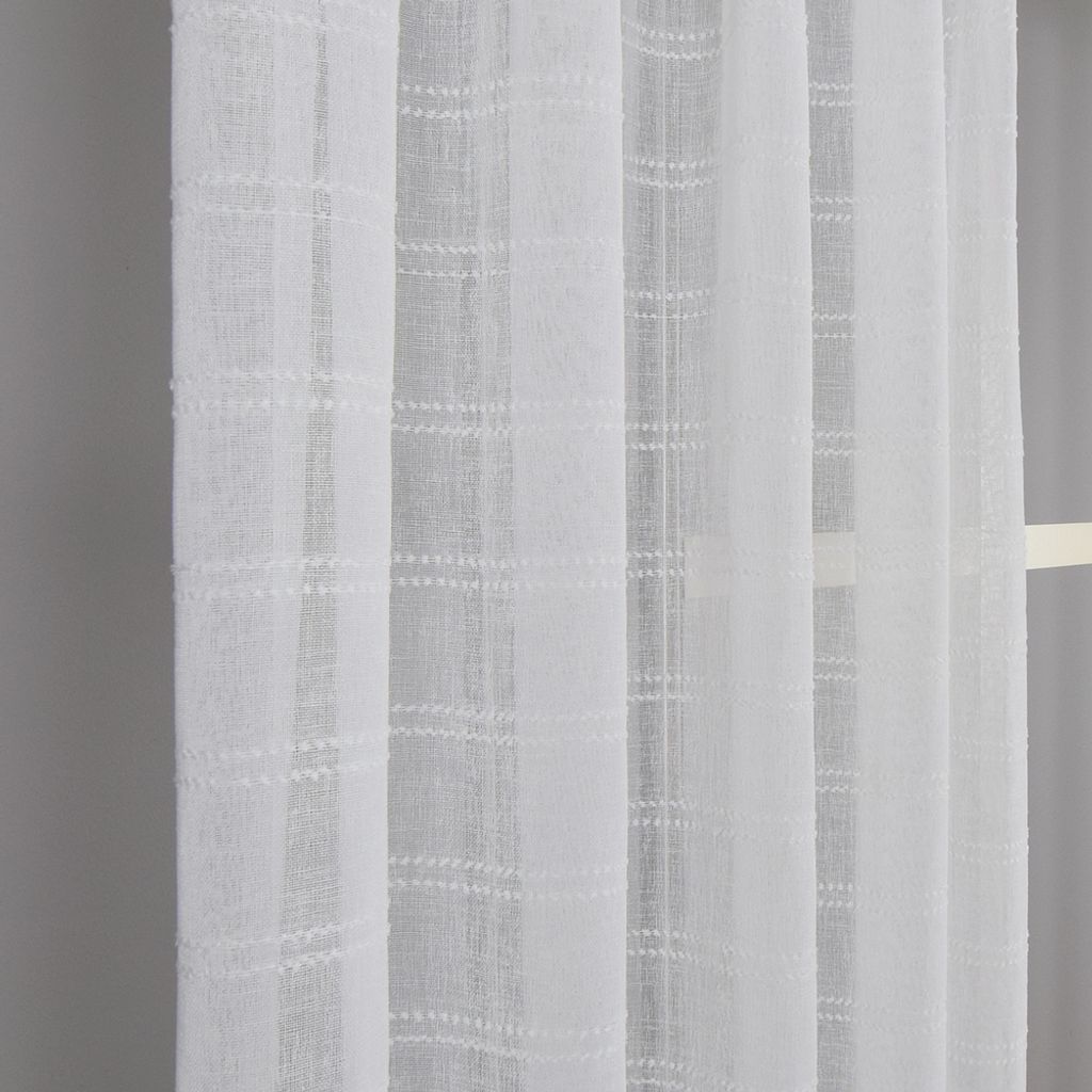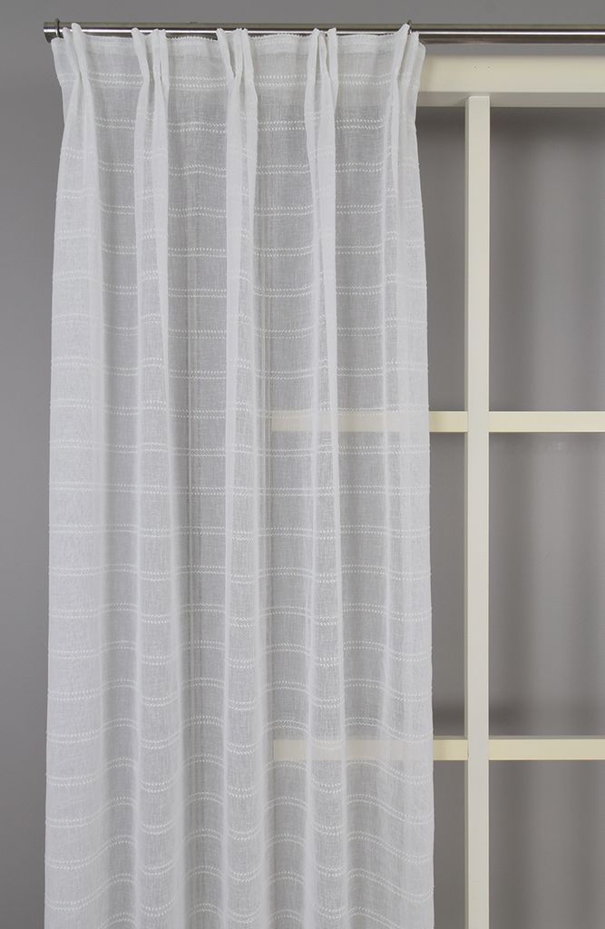 Tilly offwhite gardinlängder i skir linnelook med vackert vävd horisontell rand. Dessa gardiner skapar ett mjukt ljusinsläpp och ger ditt rum en naturlig och modern känsla. Perfekt för alla rum där du vill kombinera ljus och stilfull avskildhet. Ouppfållade med overlock nedtill