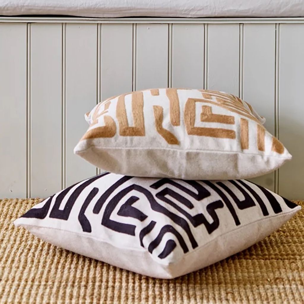 Timber Svart kuddfodral 45x45 cm med labyrintmönster. Ett modernt och stilrent val för att lyfta din inredning.