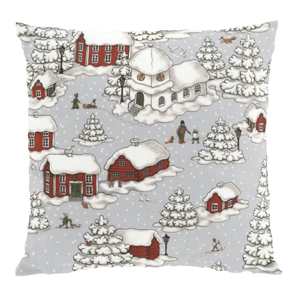 Ett kuddfodral i tyget Timmerbyn grå från Arvidssons textil.