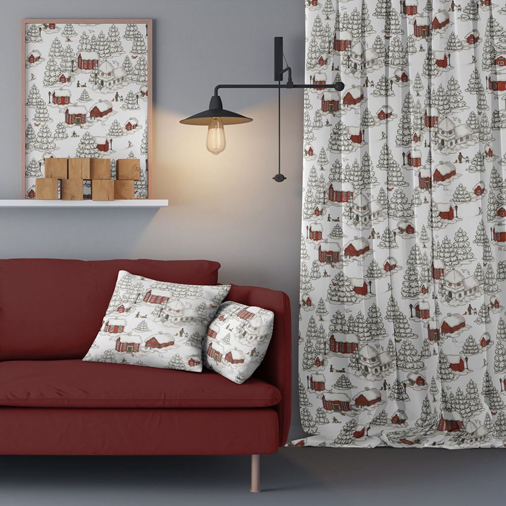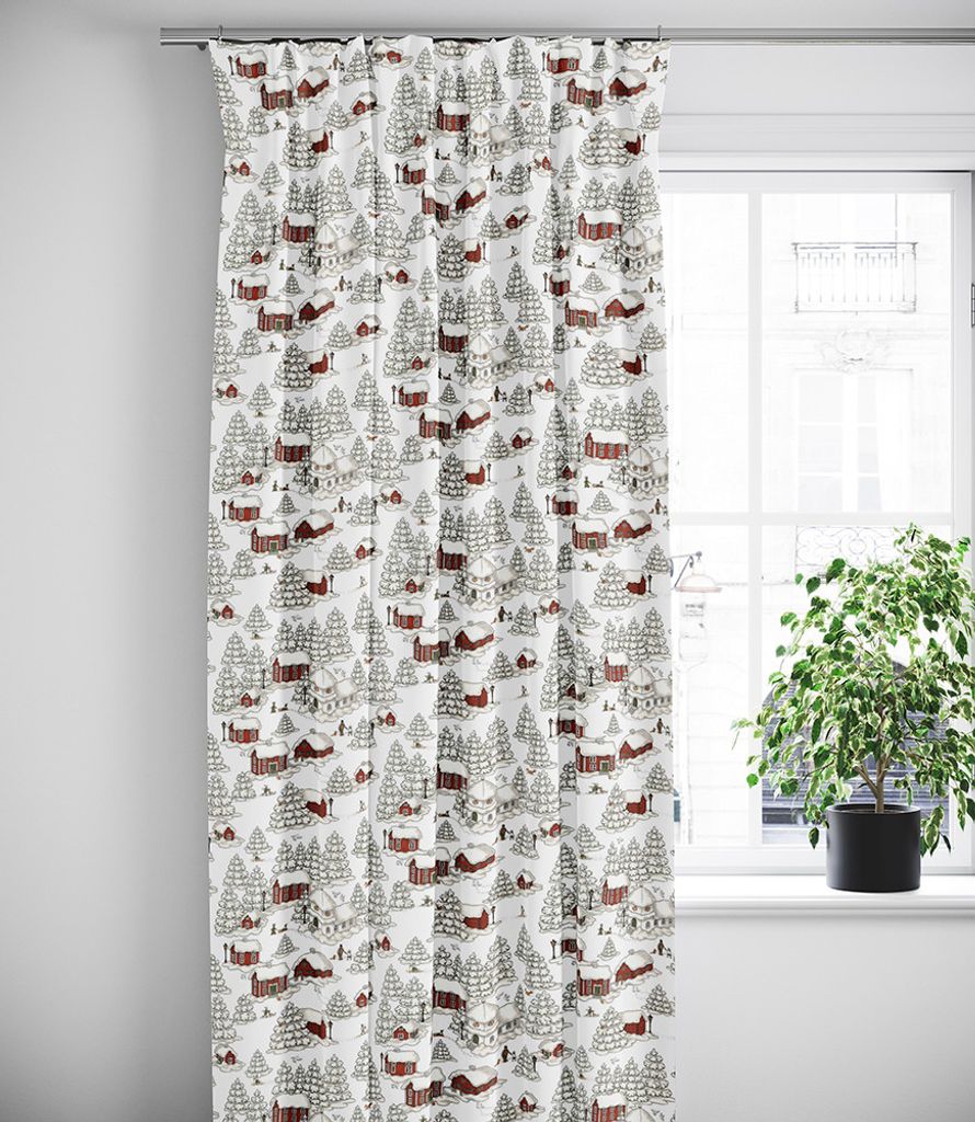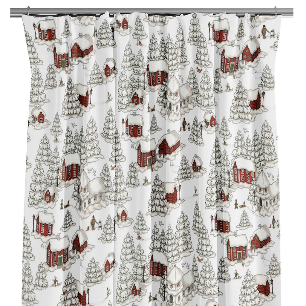 Beskrivning av Timmerbyn vit gardiner