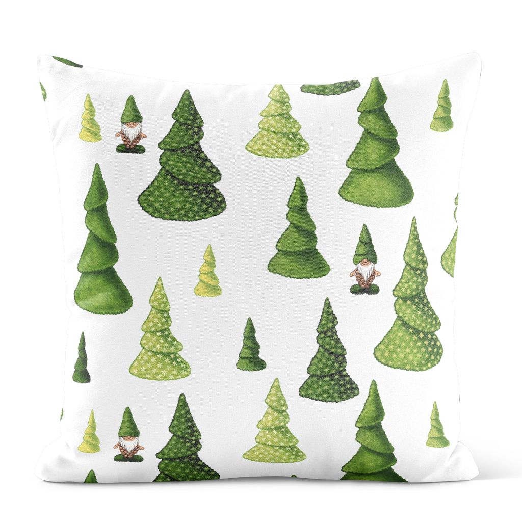 Juligt kuddfodral i bomull med gröna granar och små tomtar som gömmer sig – perfekt för soffan i juletid! Mönsterplaceringen varierar, vilket gör varje kuddfodral unikt. Innerkudde ingår ej!
