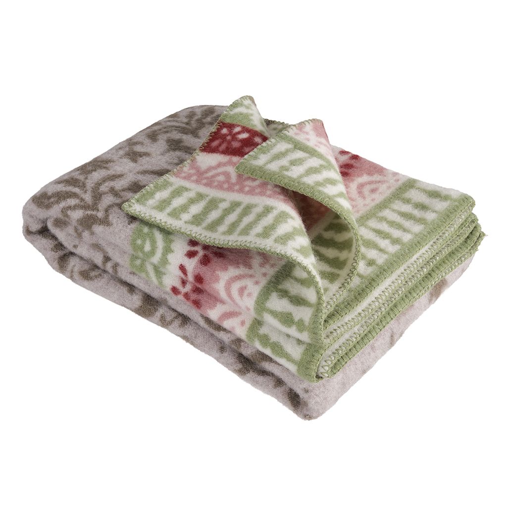 Undvik torktumlare. Pressa försiktigt ut överflödigt vatten och låt pläden torka plant.Använd inte blekmedel eller starka kemikalier.