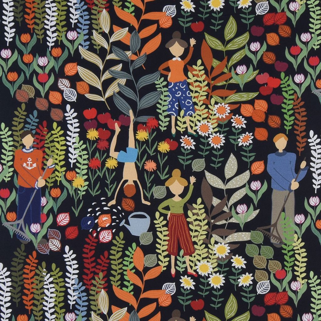 Trädgård orange-svart tyg
