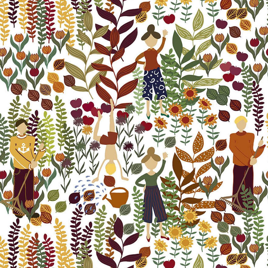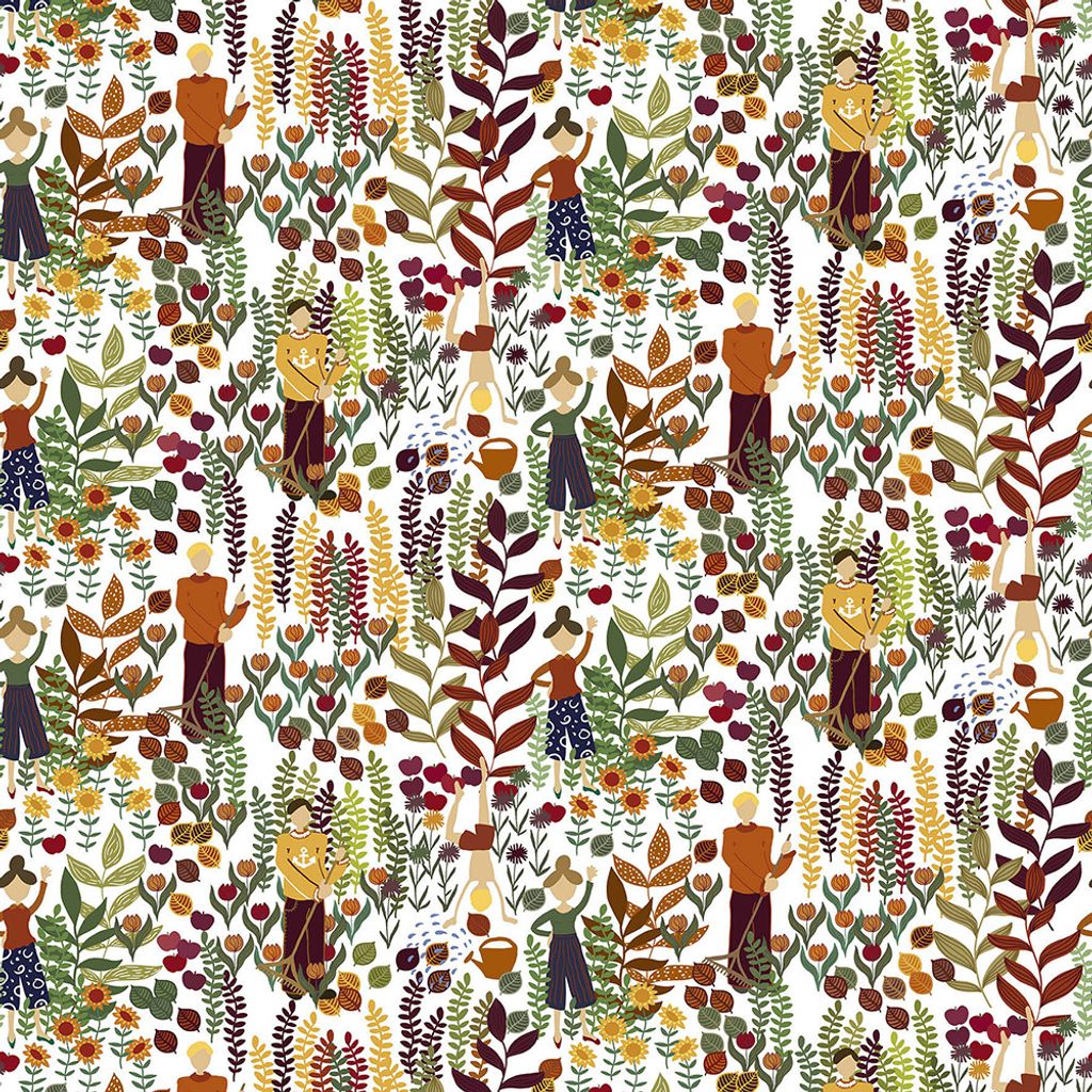 Trädgård orange-vit tyg