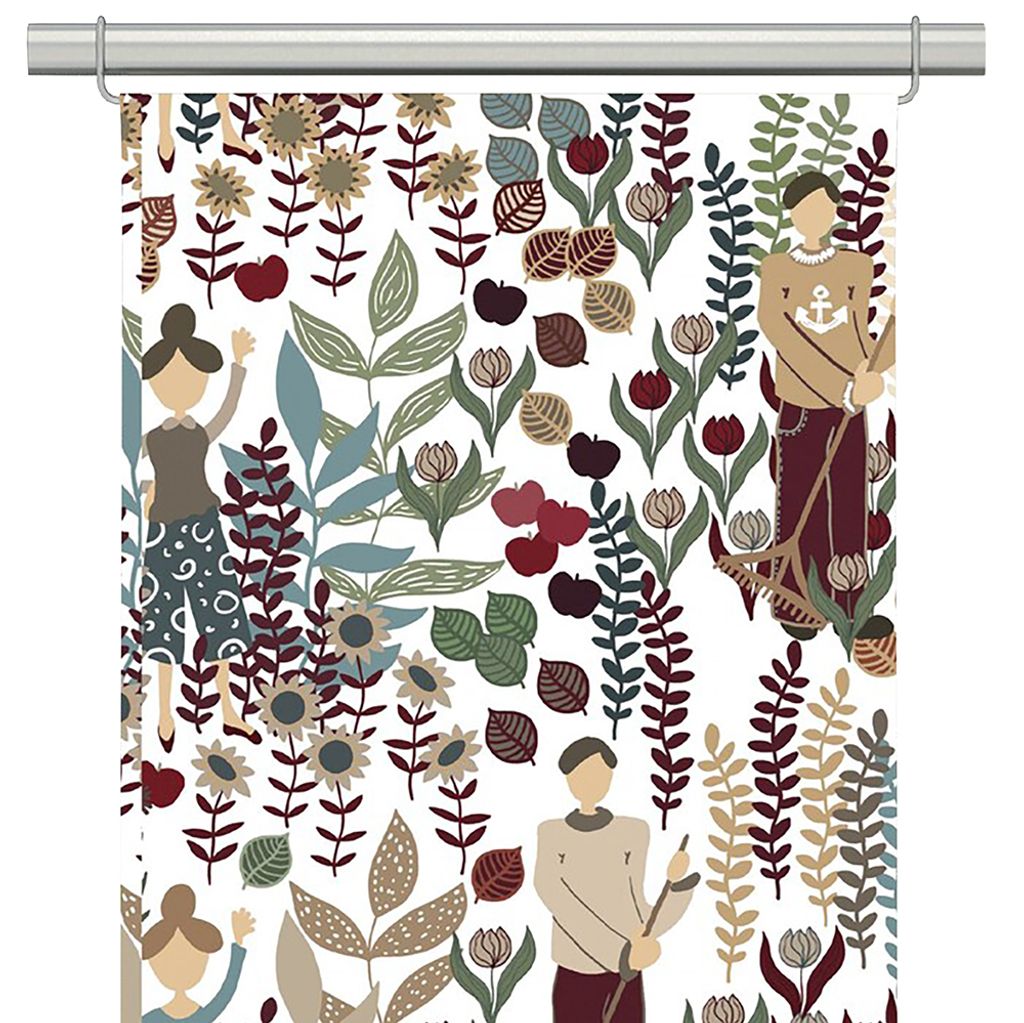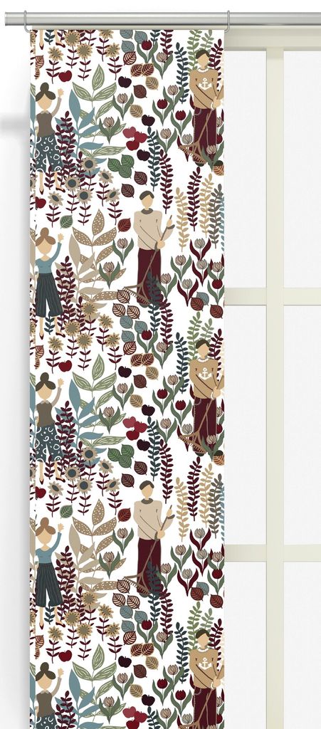 2-pack trädgård vinröd-turkos panellängd panelgardiner från Arvidssons Textil, designade av Louise Videlyck. Ett färgsprakande och tidlöst mönster som lyser upp både vår och höst. Elegant avslutad med overlock nedtill. Tillverkad i Estland: