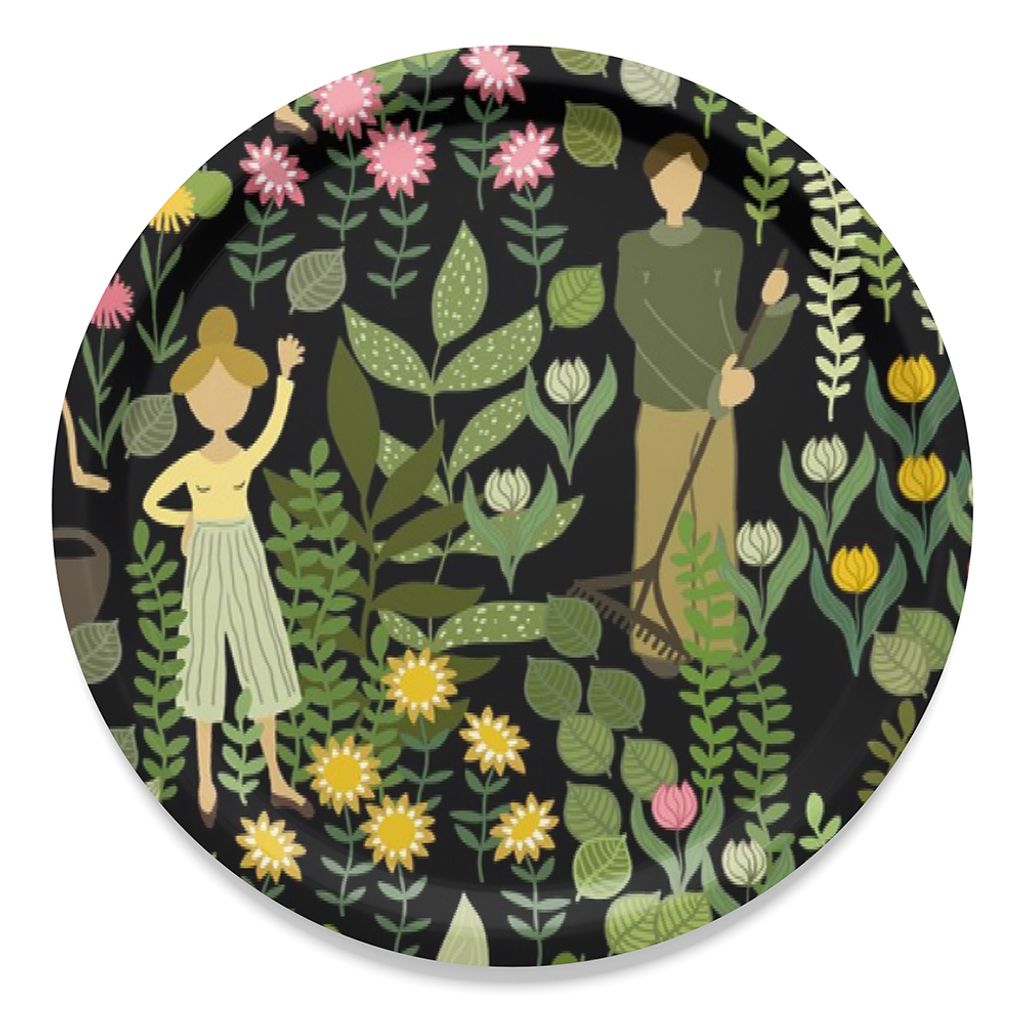 Beskrivning av Trädgård svart-grön rund bricka