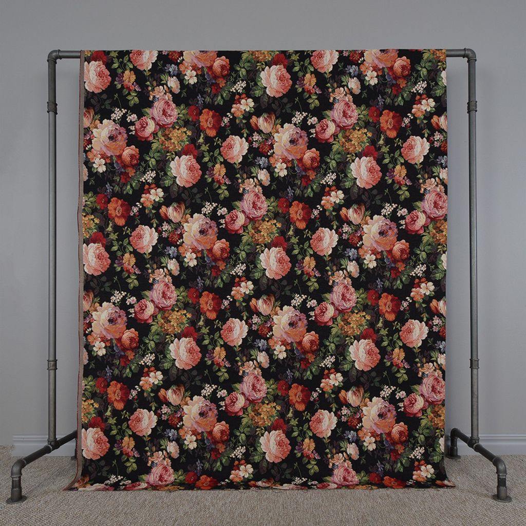 Beskrivning av Turin svart jacquard - lyxigt möbeltyg