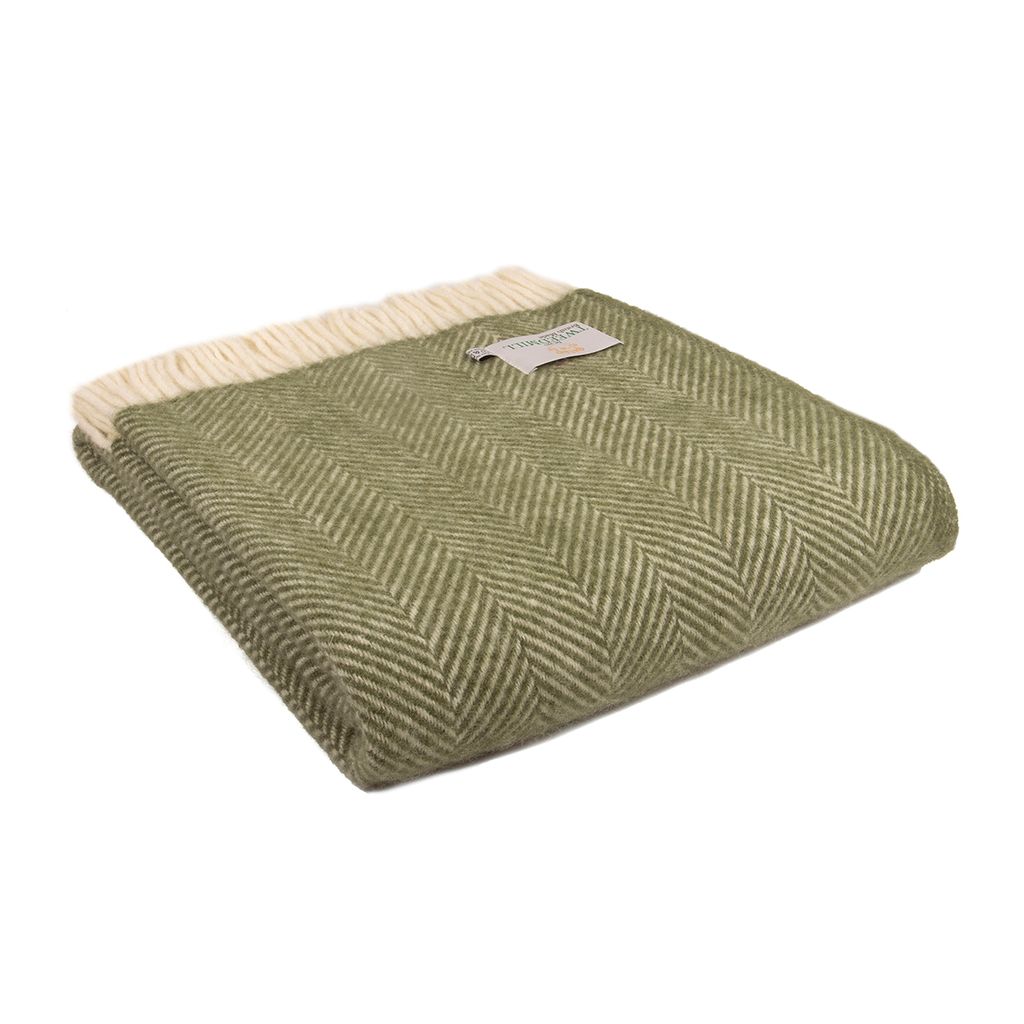 Ullpläd Fishbone Olive, 100% Ull, 150x183 cm