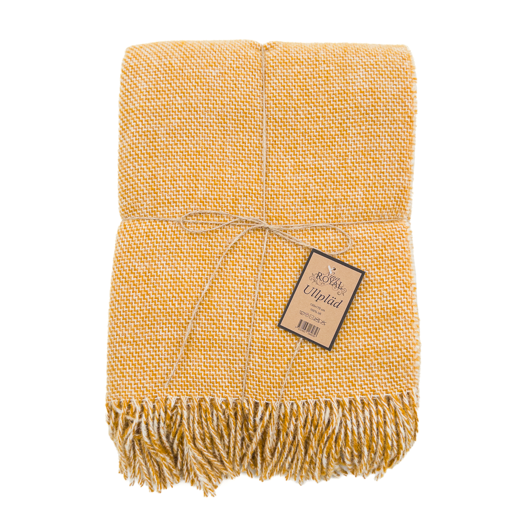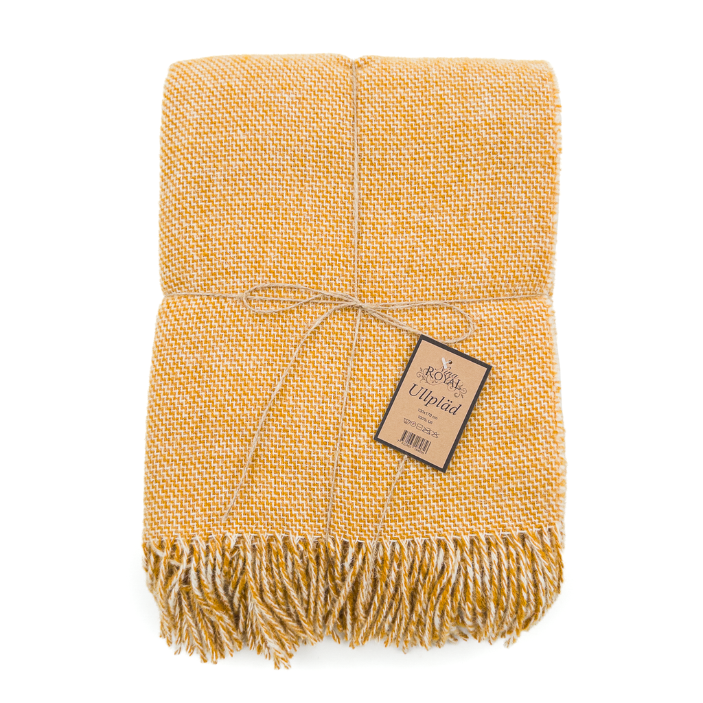 Mjuk, stilren ullpläd med fransar i royal ockra. Perfekt för soffan, fåtöljen eller sängen.
