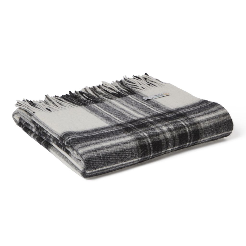 Lammullsfilt i det klassiska Grey Dress Stewart-mönstret. En mjuk och värmande pläd i 100% lammull som förhöjer både komfort och stil i hemmet.