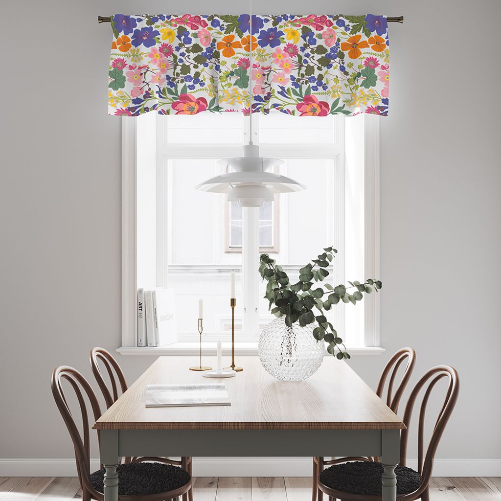 Gardinkappa Ulvön tillför en fin färgklick till rummet du sätter upp den i, en härlig kombination av blommor, blad och färger.