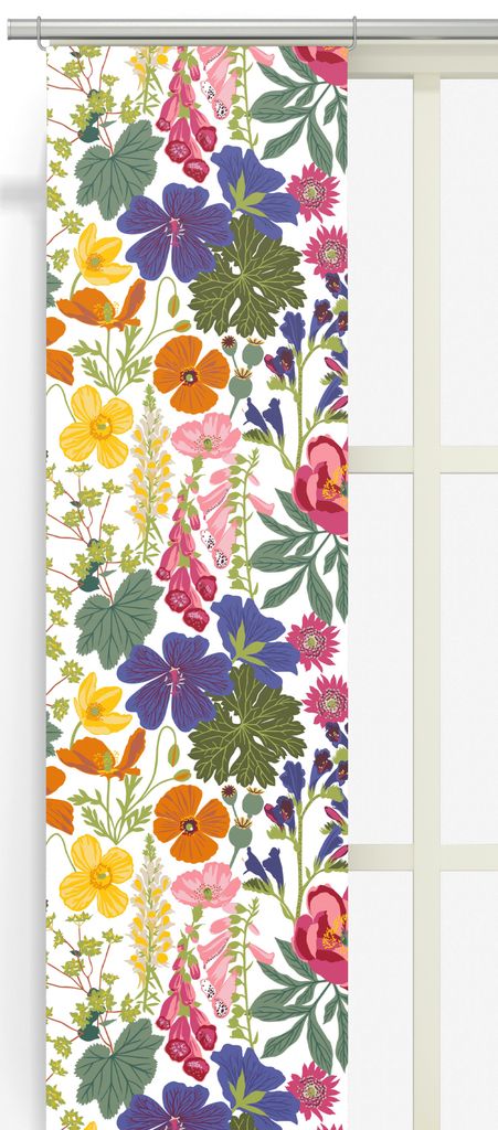 Beskrivning av Ulvön panelgardiner med färgglatt blomstermönster