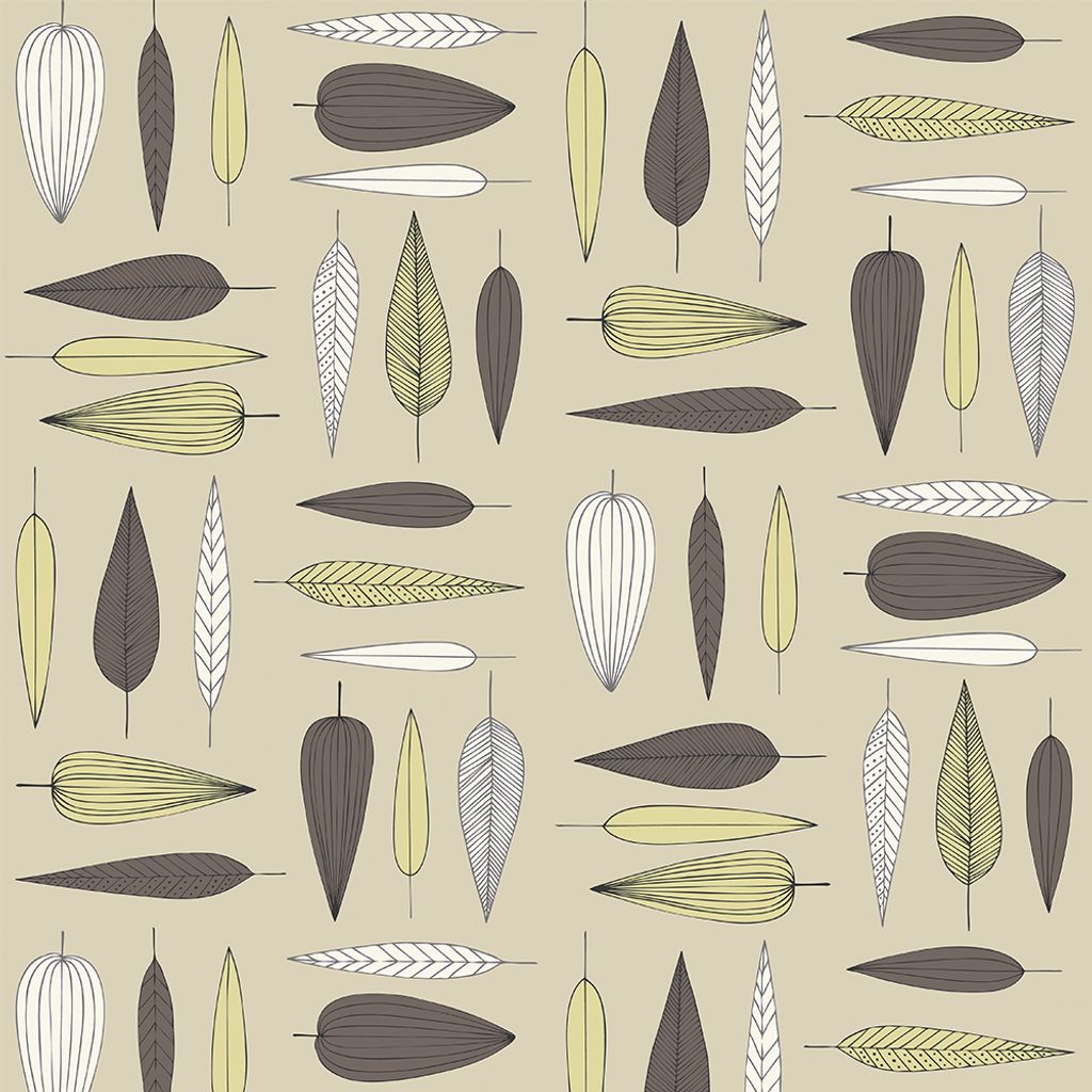 Under trädet i färgen beige är ett stilrent tyg från Arvidssons Textil med grafiskt bladmotiv i jordnära färger som brunt, vitt, gult och grönt. Det lugna uttrycket och det välbalanserade mönstret gör tyget idealiskt för både modern och klassisk inredning.