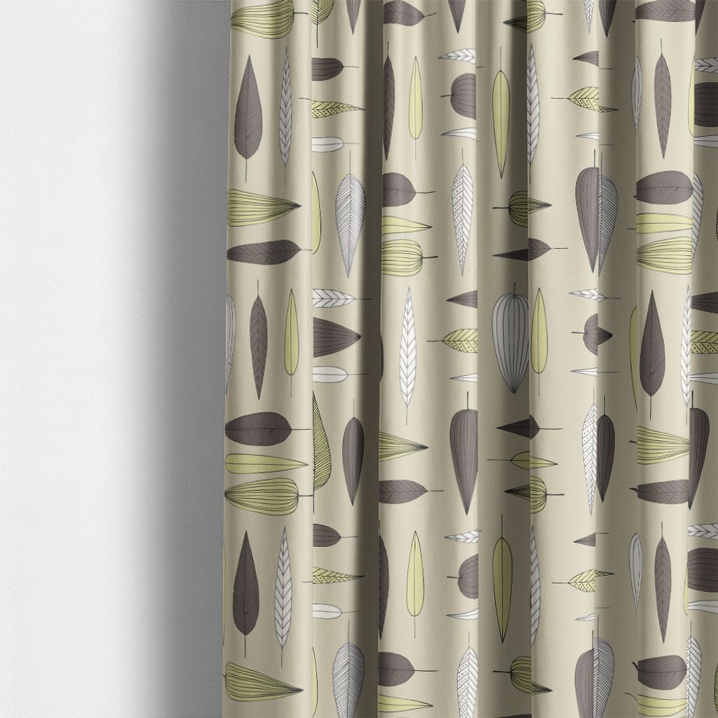 Ett grafiskt lövmönster i jordnära toner på beige botten. Perfekt tyg till gardiner, kuddar eller dukar. Design: Ulla Gustavsson