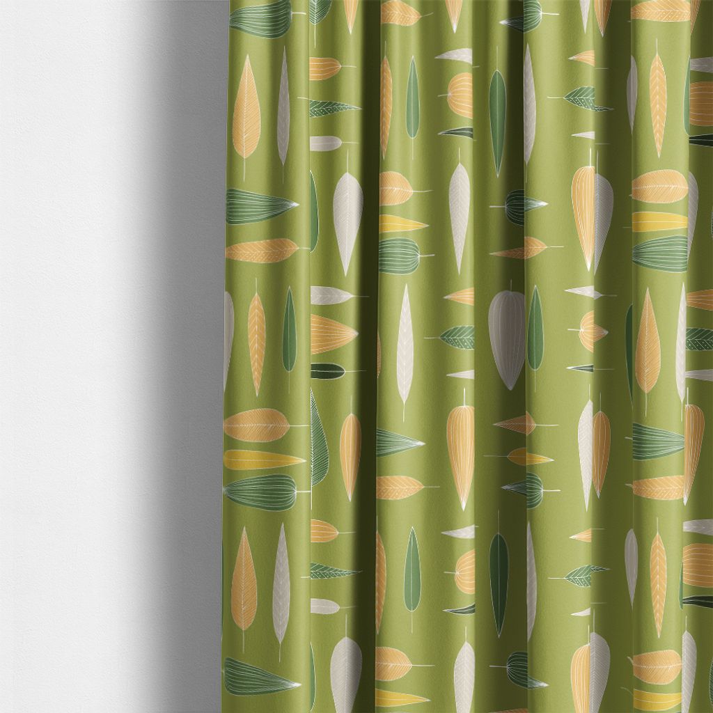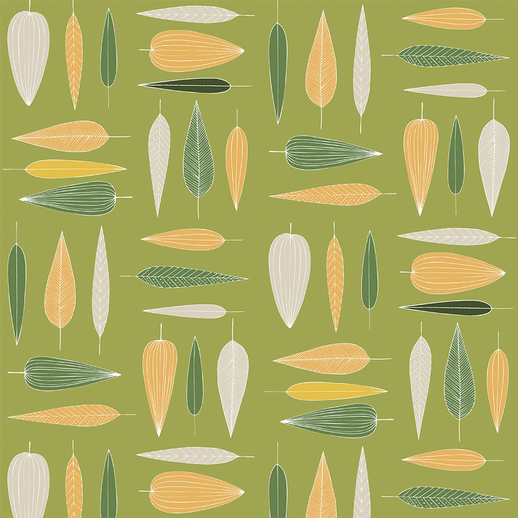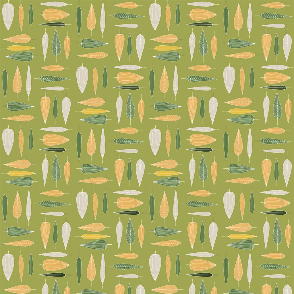 Under trädet grön är ett bomullstyg med ett levande bladmönster i gröna, gula och naturvita toner. Ett mjukt och inbjudande tyg som passar lika bra till gardiner som till kuddar, dukar och kreativa sömnadsprojekt.