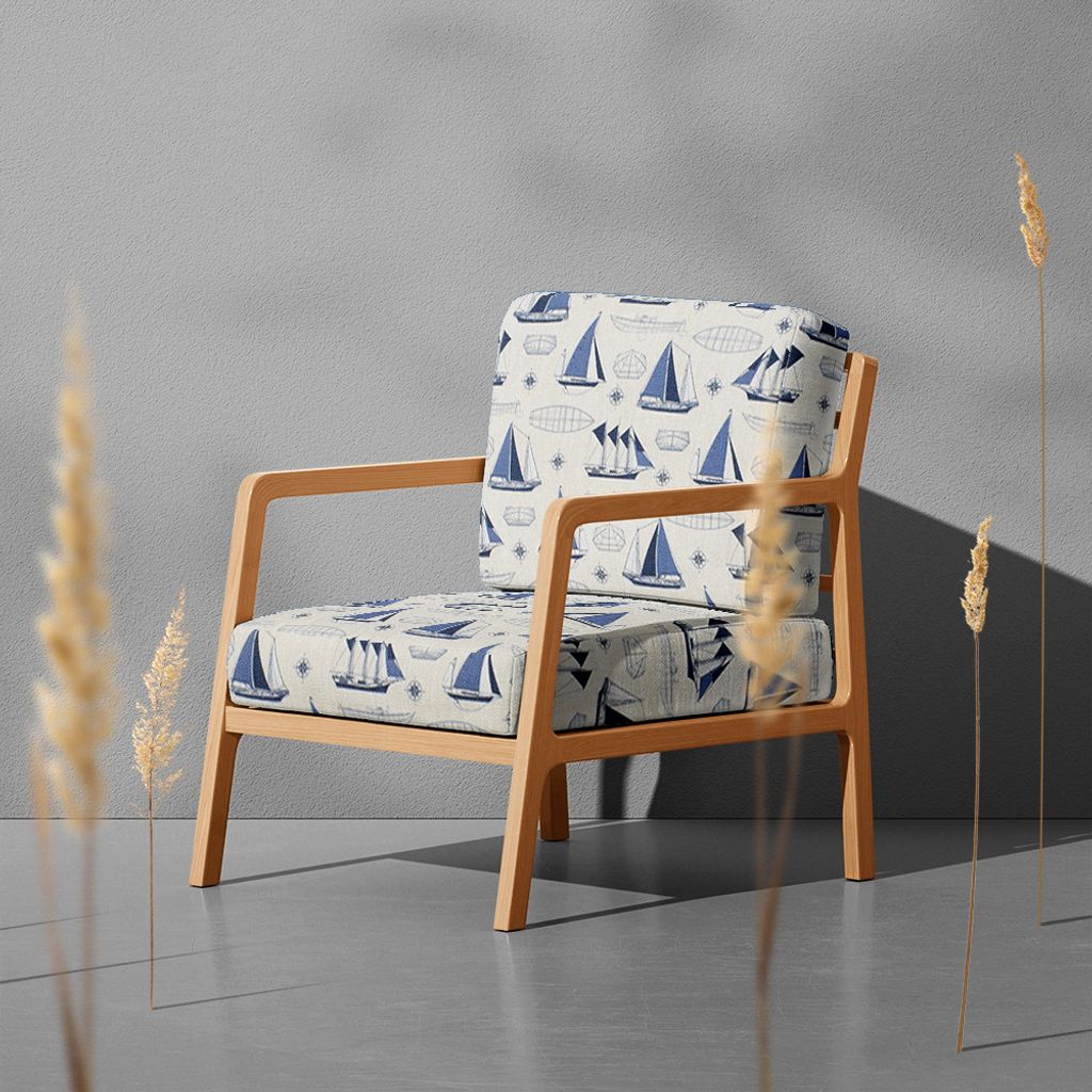 Utevävs tyg med marint tema, passar utmärkt till dynor, kuddar, vaxduk och diverse uteprojekt då väven är teflon och dralon behandlad.