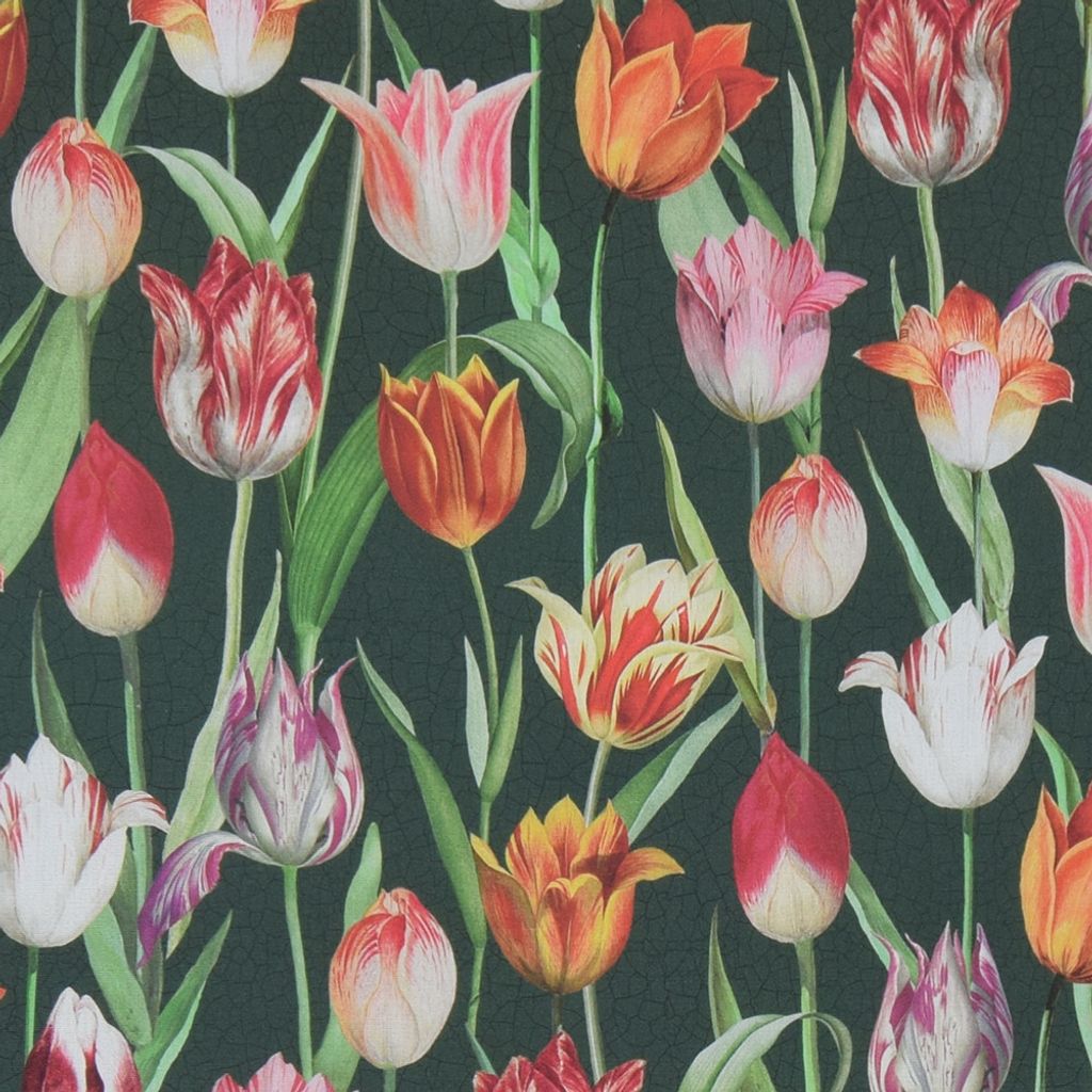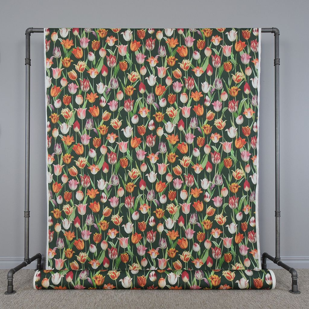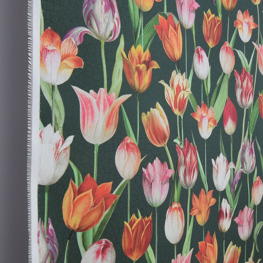 Mönstrad Utevävs tyg med vackra tulpaner i härliga färger.