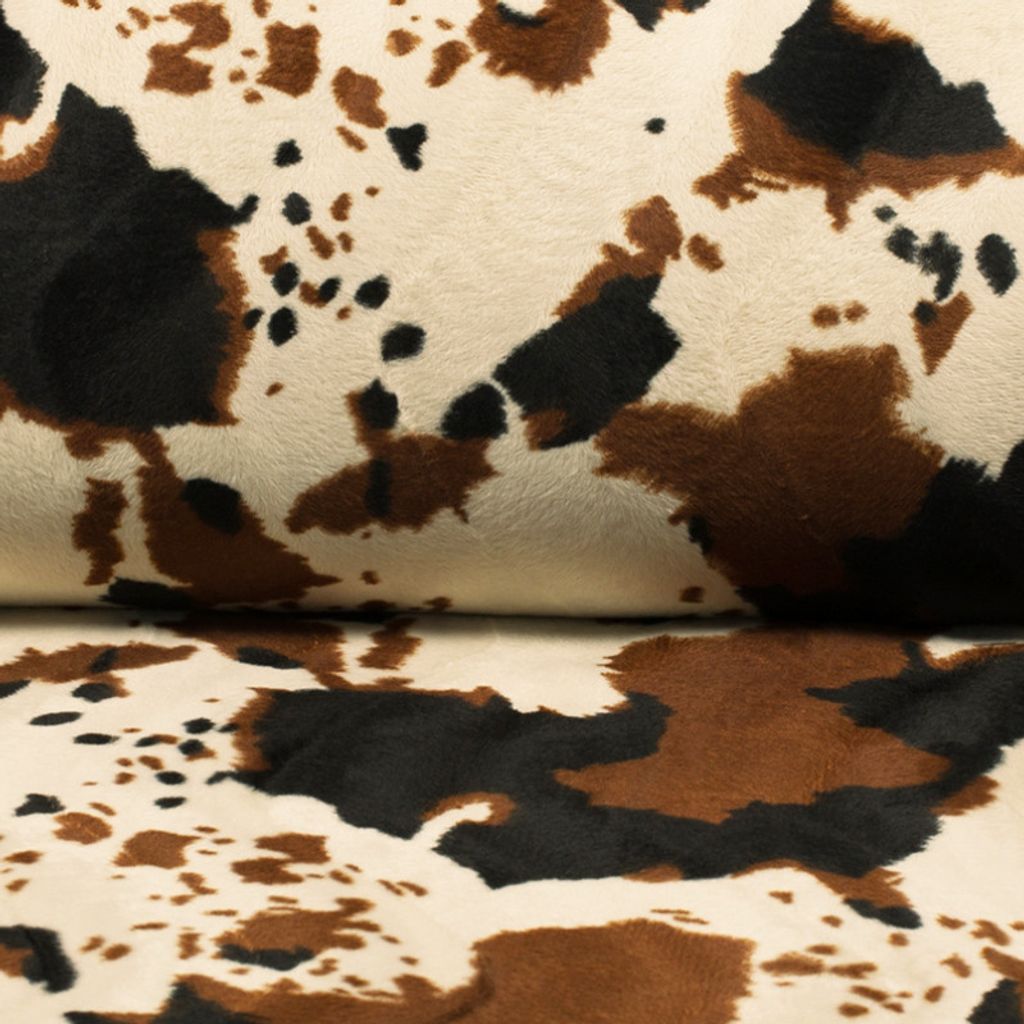Buffalo velboa mönstrat pälstyg som en brun ko perfekt till sömnad av kläder eller inredningsdetaljer.