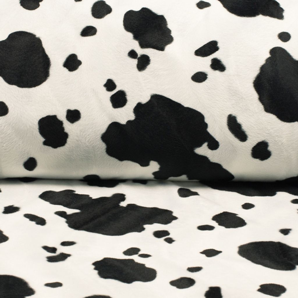 Plästyg likt en svart och vit kossa korthårigt tyg som passar till kläder, maskerad och inredning