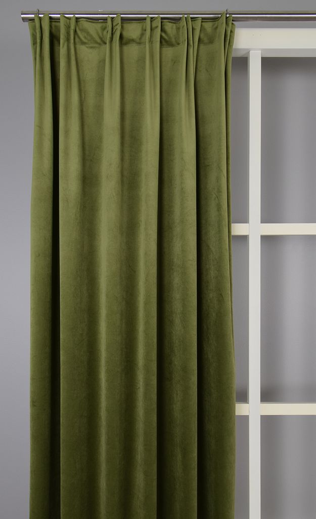 Lyxig grön sammet med härligt fall som får vilket rum som helst att kännas lite extra.
