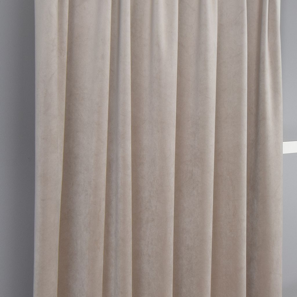 Ett par exklusiva gardiner i ljusbeige lyxsammet som får vilket rum som helst att framträda lite extra.