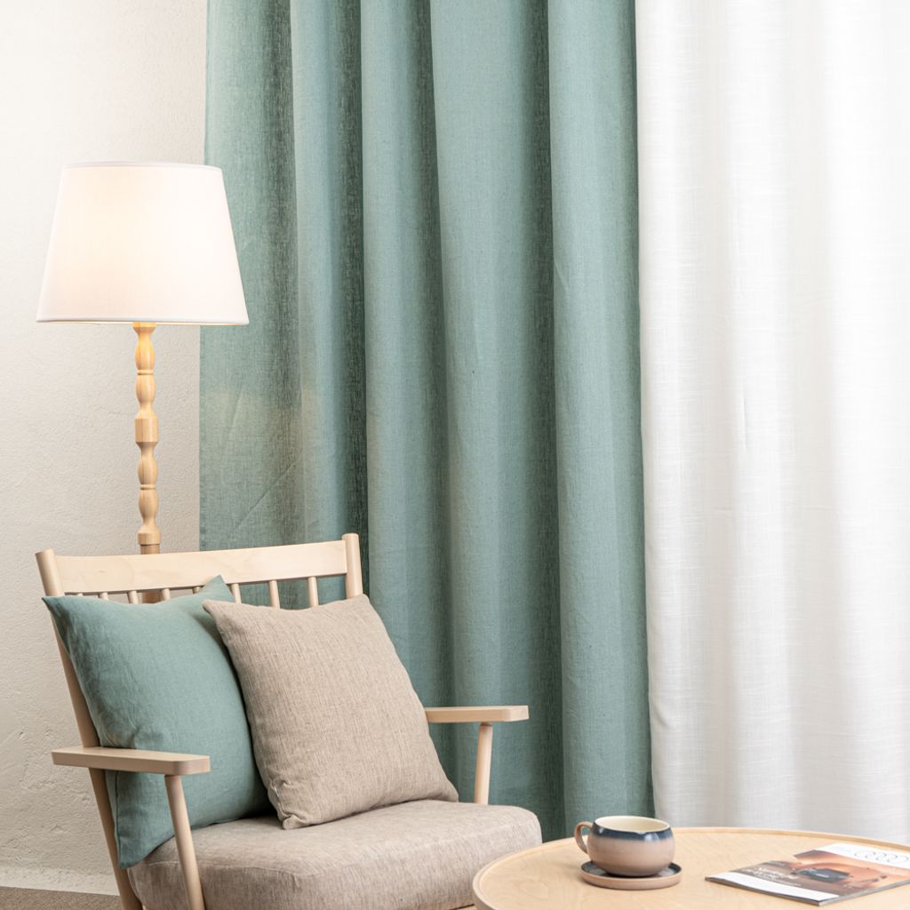 Verone Linne aqua. Härligt linnetyg i 100 % lin. Tyget är mjukt och följsamt, med en naturlig struktur. Perfekt för gardiner, dukar, kuddar och andra heminredningsprojekt där du vill skapa en inbjudande känsla. Med en slitstyrka på 22 000 Martindale är tyget tåligt och lämpar sig väl för möbelöverdrag och andra ytor med måttligt slitage.