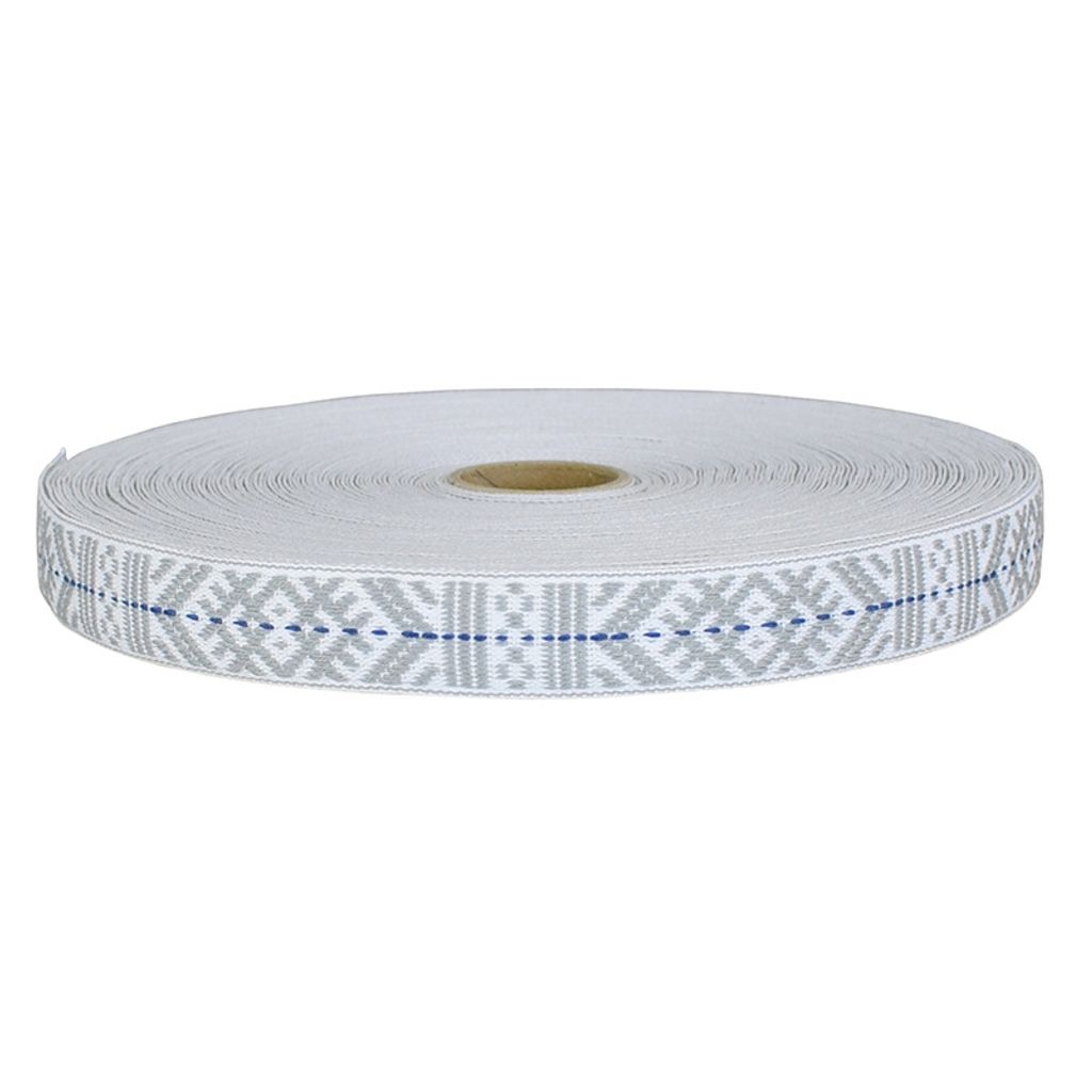 Vävt band i vitt, grått och blått