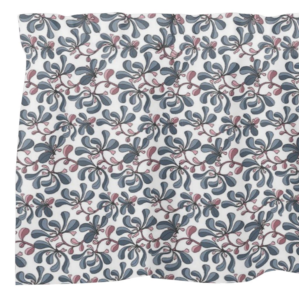 Gardinkappa på metervara med ett snirkligt blad mönster i blått och lila.