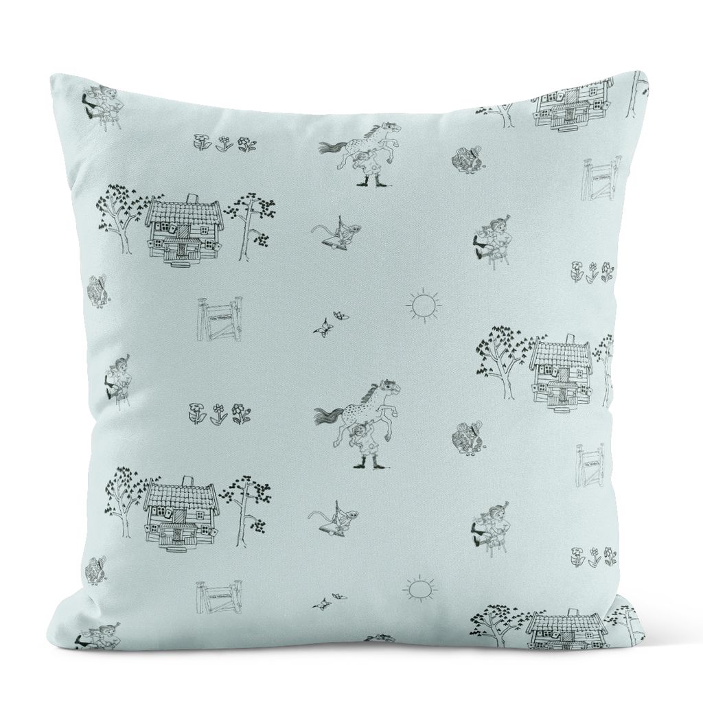 Kuddfodral i bomull med motiv från Villa Villekulla – ett stilrent och lekfullt tillskott till hemmet. Mönsterplaceringen varierar, vilket gör varje kuddfodral unikt. Innerkudde ingår ej!