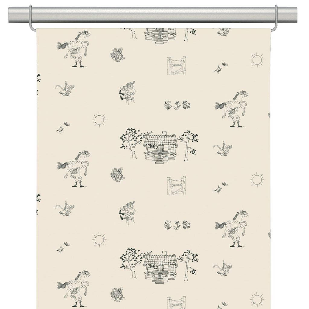 Den här panelgardinen från Arvidssons Textil fångar det klassiska huset och Pippis vardagsäventyr på ett charmigt sätt, en varm beige botten. Mönstret är rofyllt men fullt av liv, vilket gör den perfekt för både lekfulla och lugna rum.