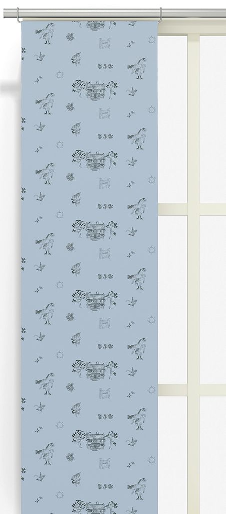 Beskrivning av Villa villekulla panel – Blå Panelgardin